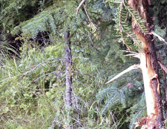 We get out and head down the trail to a place I like to call from. As we stop, I realize we can hear something incredibly loud in the distance. I listen and realize it’s a drilling rig freshly planted just across the valley. I’m about ready to throw my calls into the bush and head home but what the hell, may as well give a few calls and see if anything is left in the area. I give a couple mews on the cow call and bang there’s a bull a few hundred yards into the bush, and he’s fired up! We dive off the quad trail and keep him talking. Every time I mew, he’s screaming louder and coming faster.