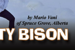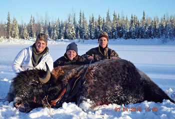 By this time, the whole herd had turned and ran towards the bush where we lost sight of them. Adrenaline is a crazy thing; I ran through three feet of snow over 150 metres without hesitation and once rounding a bend, there lie my bison.