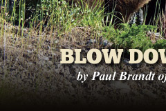 Mike named him the “Blow Down Buck.” In the last gasps of that awesome day, we pulled out six string guitars and with aching arms and cramped fingers, somehow came up with the “Low Down, Blow Down B-B-B-B-Blues.” ■