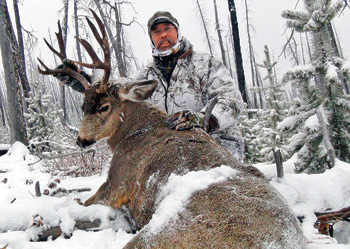 A Snowvember ritual was unveiling, as Mike Szabo and I slipped into heavy snow camo, facemasks, hand warmers and 20-below zero boots. Shouldering heavy packs, we began climbing into curtains of grey daylight. Snuggled safely in Mike’s pack, a restless mule deer tag, and on the horizon our rifle stand waited. I had the honour of leading Mike to its hidden location. A stand that’s never let me down... ever. We were bundled, loaded, and wired.